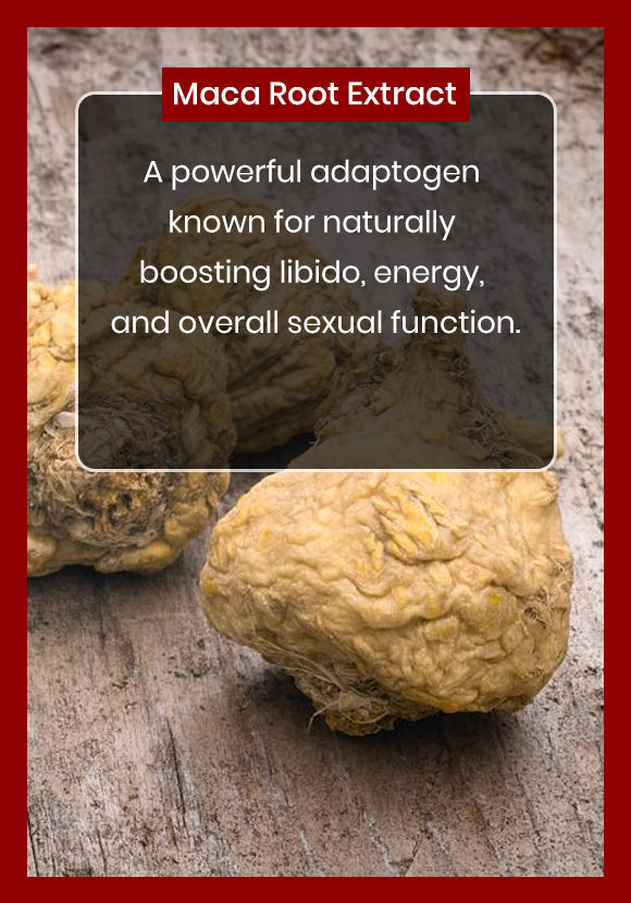 Main Ingredients: Maca Root Extract, Horny Goat Weed, Tribulus Terrestris, Panax Ginseng