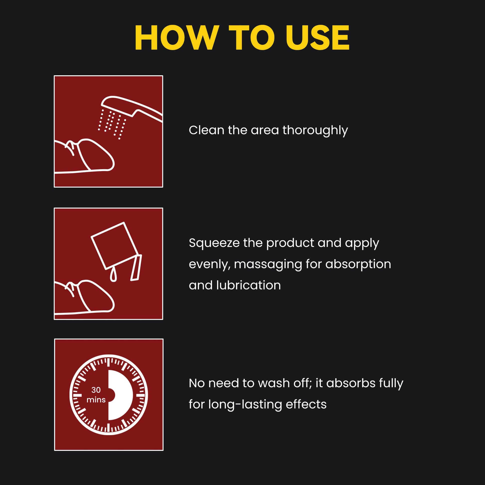 Squeeze the product and apply evenly, massaging for absorption and lubrication.