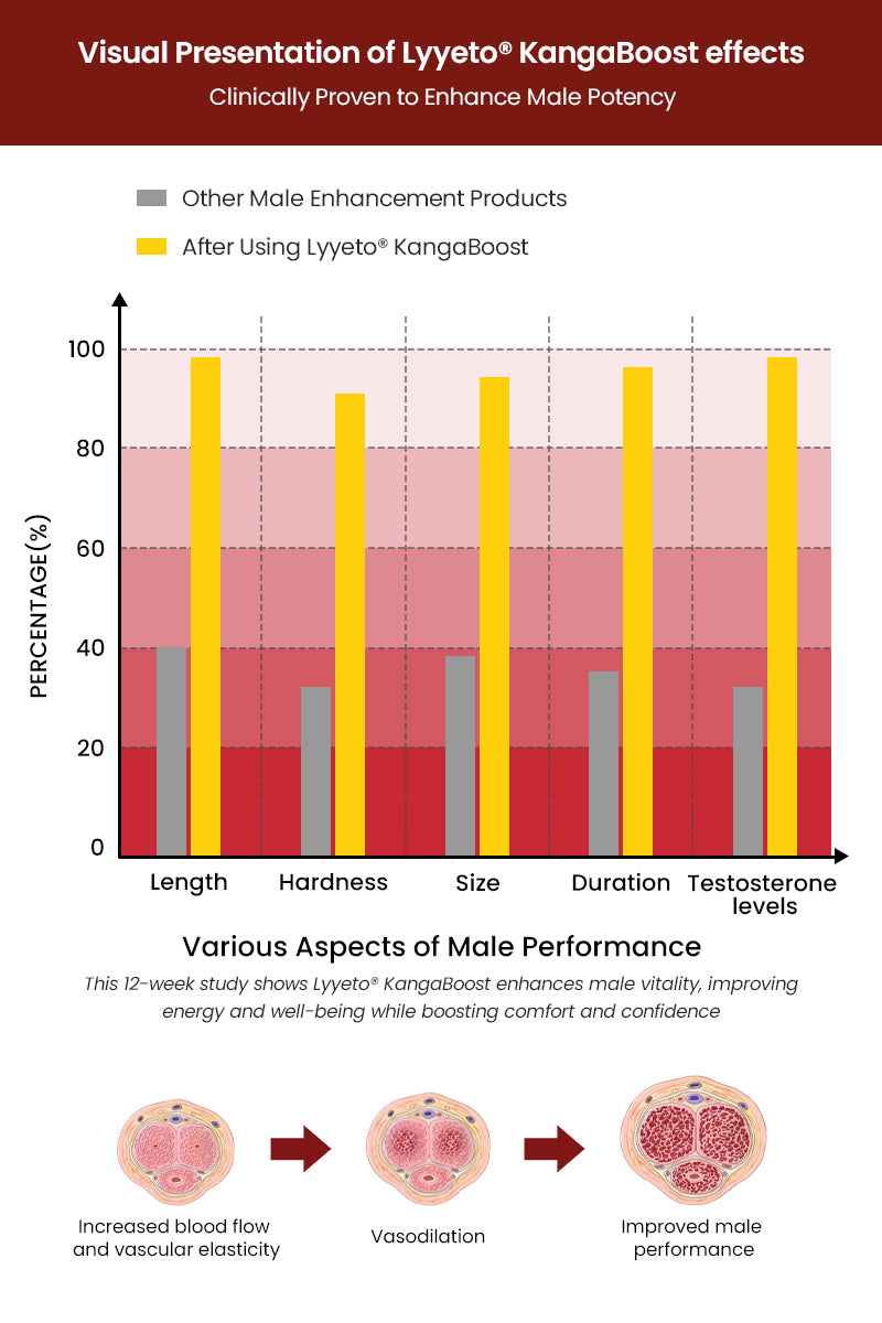 Lyyeto® KangaBoost works by leveraging a scientifically formulated blend of natural ingredients that target the root causes of male performance issues, ensuring stronger, longer-lasting erections and improved sexual stamina. Here's a breakdown of how it works: