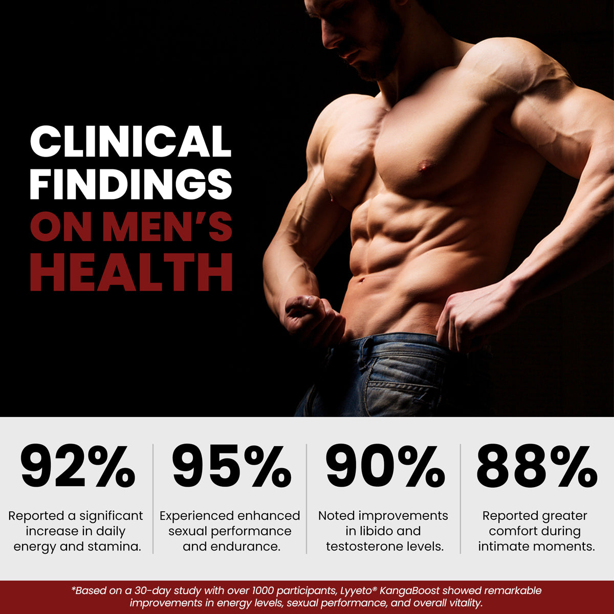 In a comprehensive clinical study involving 2000 participants, the key natural ingredients in Lyyeto® KangaBoost demonstrated significant results in enhancing erection quality, endurance, and overall sexual performance in men.