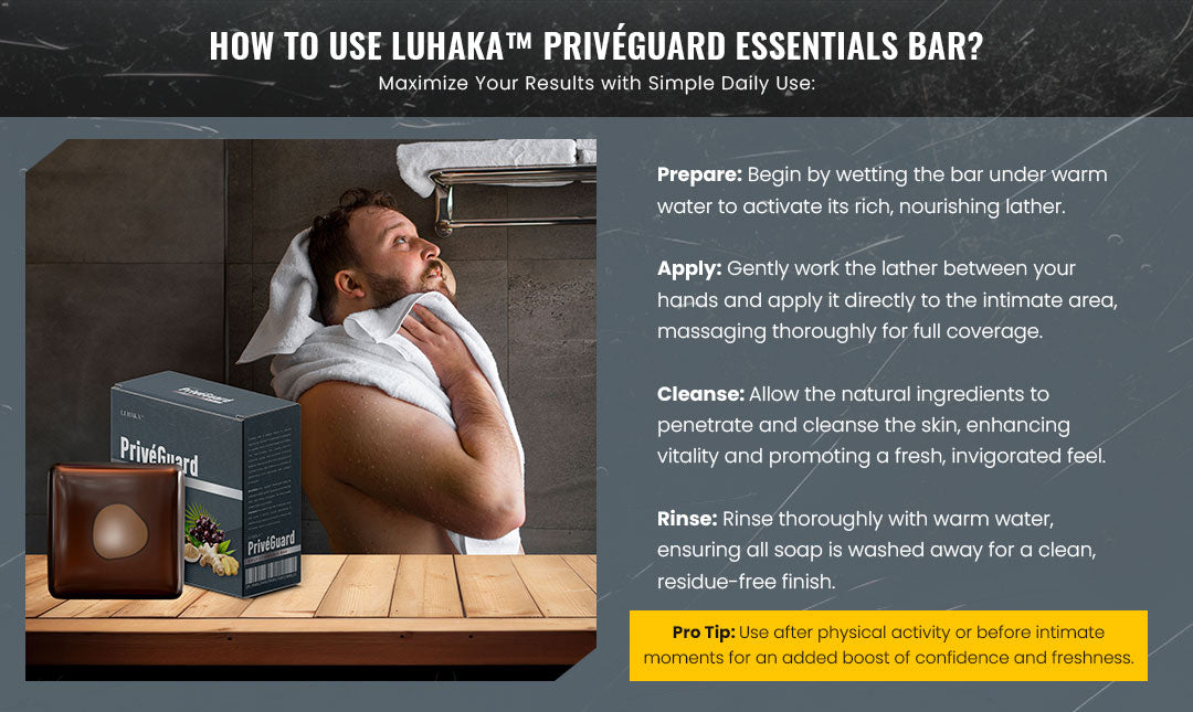 "As a leading urologist at Summit Health Institute, I recommend Luhaka™ PrivéGuard Essentials Bar for men aiming to elevate their sexual health. This soap is a breakthrough in men’s intimate care, promoting enhanced sexual performance, endurance, and overall vitality. Luhaka™ PrivéGuard Essentials Bar is carefully formulated with powerful herbal ingredients that support blood flow and stamina, making it an excellent choice for those seeking a natural and effective way to boost their sexual wellness. Whether you're looking to improve performance or simply maintain intimate health, this bar is a game-changer for men."
