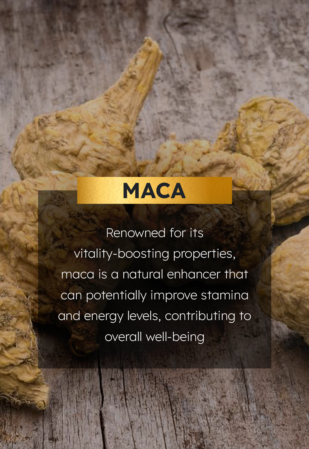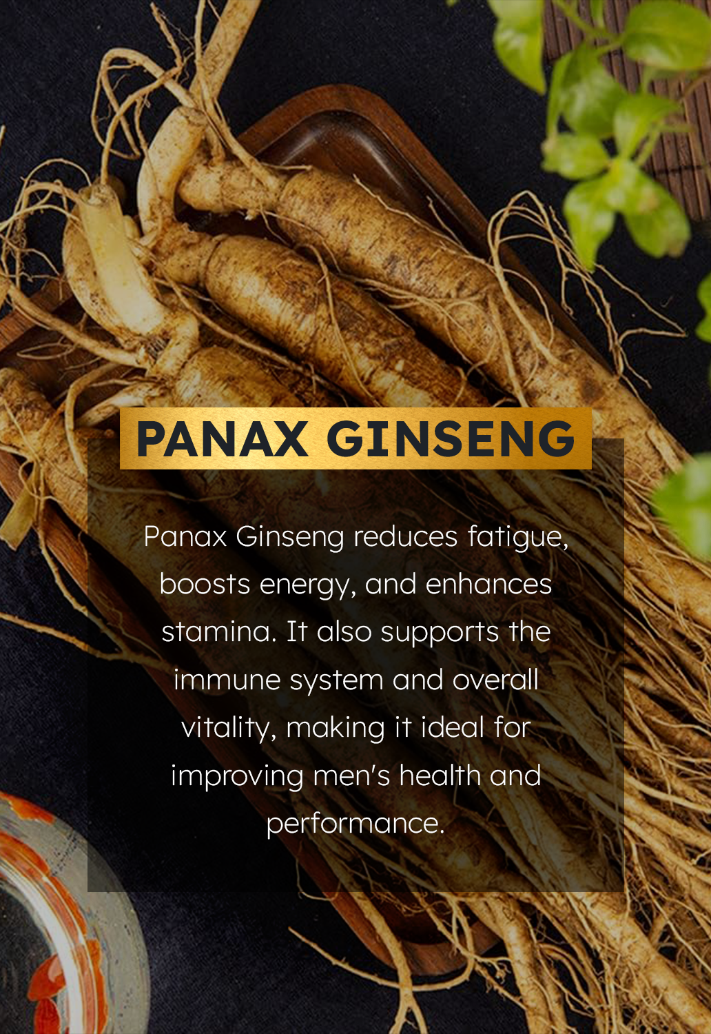 PowerAce Pro main ingredients—Maca, Ginseng and Zinc, gives you an all-round boost of masculinity