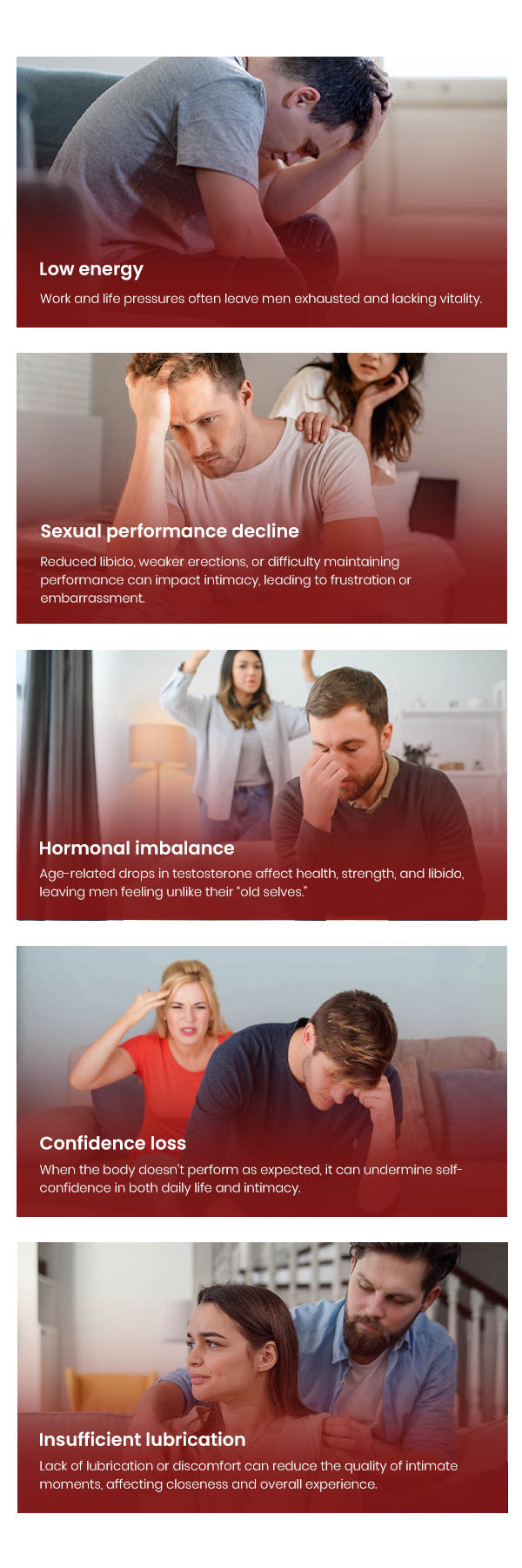 As men age or deal with stress, it’s common to feel a dip in self-esteem and relationships. If you're having trouble with strong erections or feeling less energetic and motivated, you're not alone.