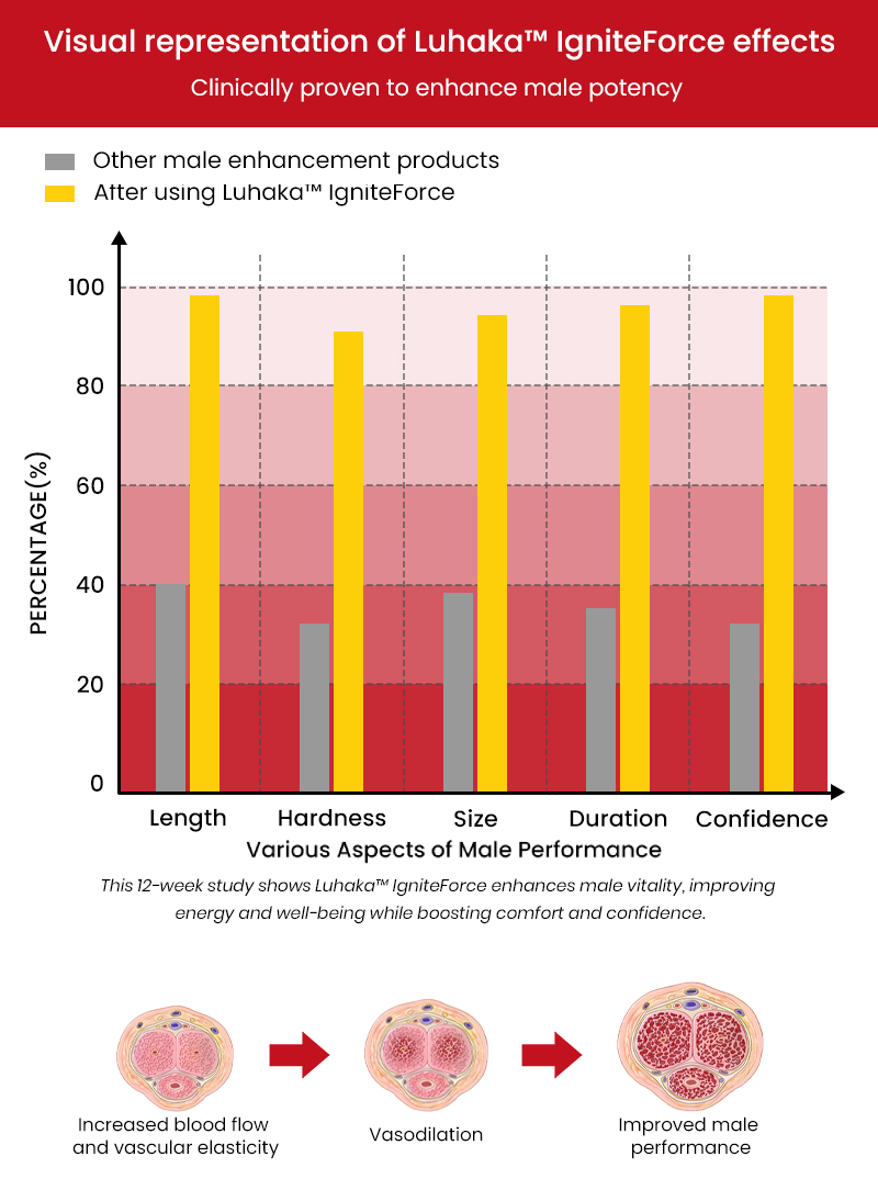 *Based on a 30-day study with over 1000 participants, Luhaka™ IgniteForce showed remarkable improvements in energy levels, sexual performance, and overall vitality.