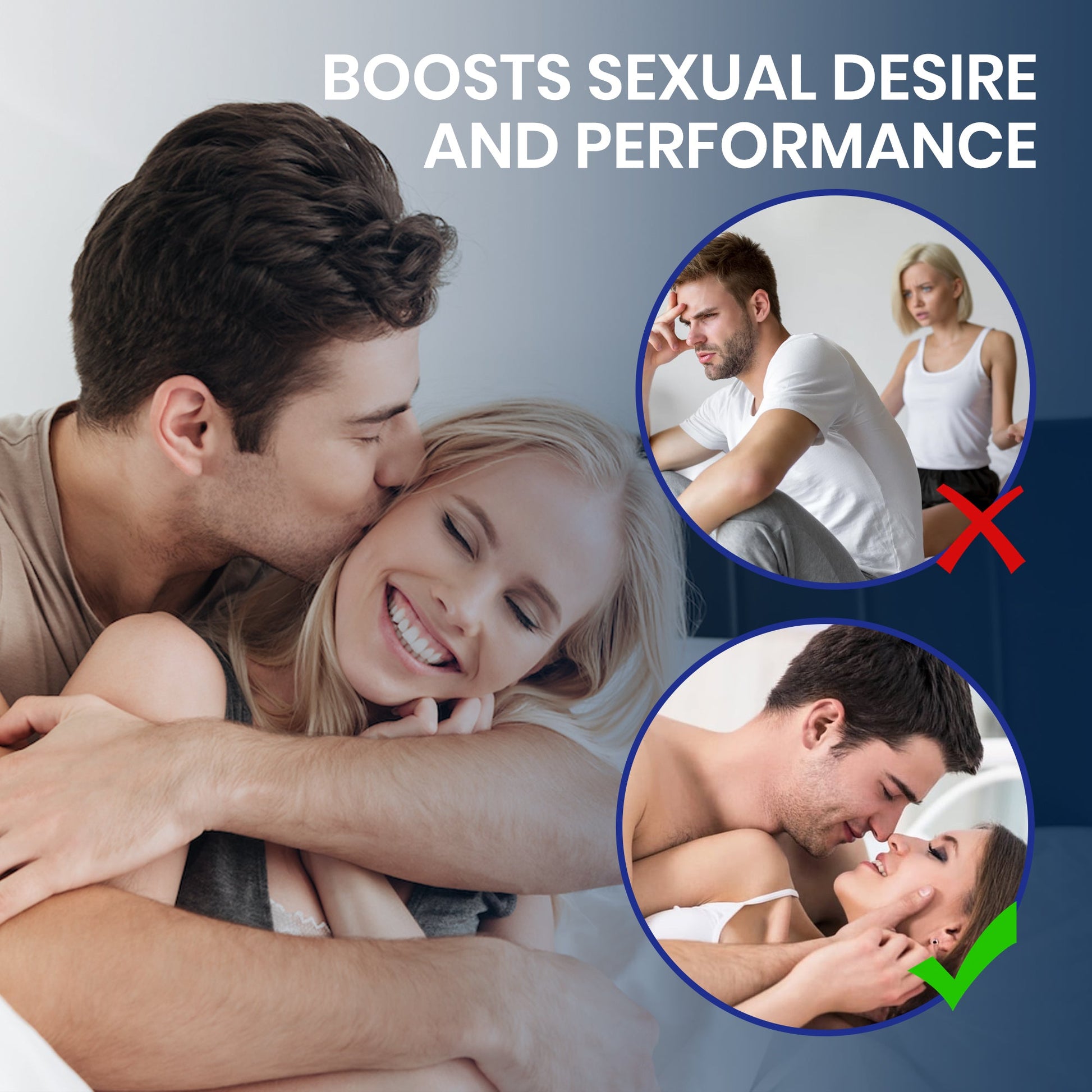 It supports prostate health, enhances urinary flow, improves sexual function, and boosts overall vitality through targeted nutrients and herbal extracts.